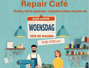 Samen repareren we kapotte spullen, verminderen we afval en zorgen we dat dingen langer meegaan. Goed voor de planeet én voor je portemonnee. Ondertussen is er tijd voor een kopje koffie of thee, een goed gesprek en leer je van de vakmensen die graag hun kennis delen. Fijn voor je spullen, leuk voor de wijk.