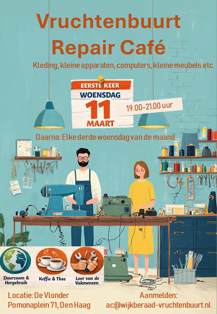 aanmelden: ac@wijkberaad-vruchtenbuurt.nl (korte omschrijving wat je wil repareren)